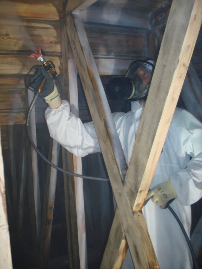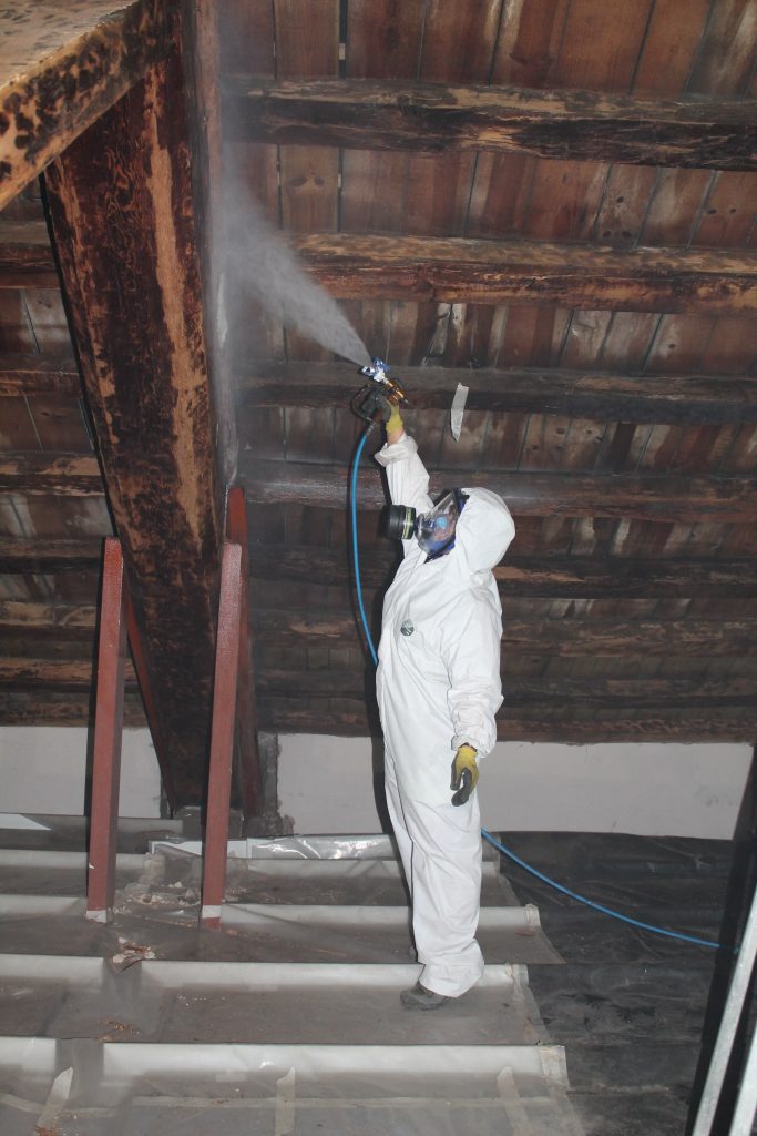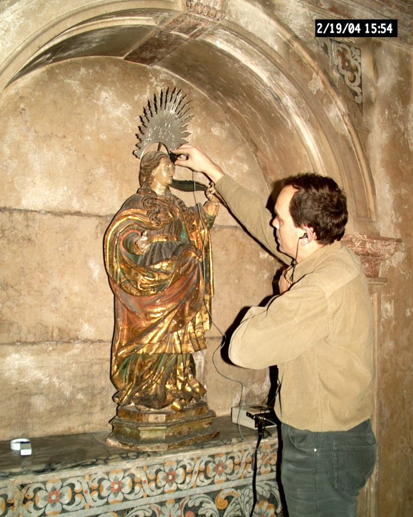 Realizamos tratamentos de desinfestação de estruturas de madeira através da injecção em profundidade e da impregnação superficial, em estruturas de retábulos, tectos e pavimentos.