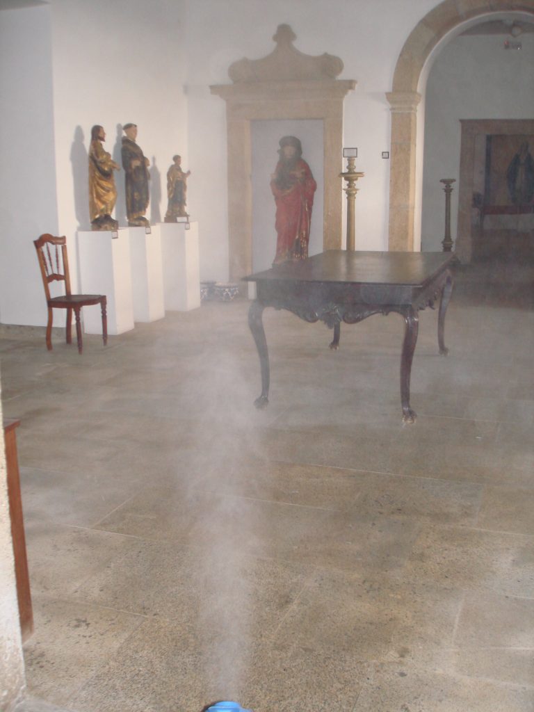 Este tratamento é adequado para peças móveis (documentos gráficos, têxteis, mobiliário, escultura, pintura e elementos de talha dourada)